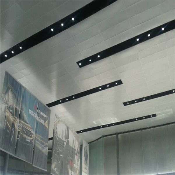 廣汽傳祺室內(nèi)吊頂則使用的是500*1500mm的微孔鍍鋅鋼板吊頂,主要以白色微孔吊頂為主,燈槽同樣規(guī)格,但采用的是黑色的涂層,配合燈光使用,聚光,滿足4S店的使用需求,吊頂采用的是勾搭式吊頂系統(tǒng),平整度高,穩(wěn)定性好,是一種極為理想的吊頂結(jié)構(gòu)。