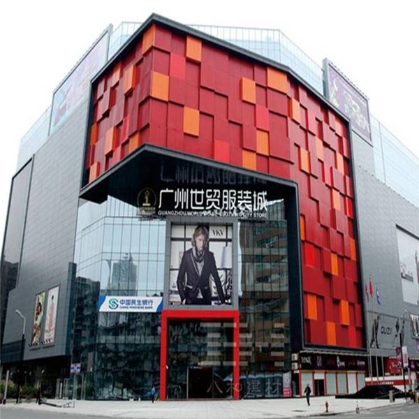 廣州世貿服裝城位于越秀區站南路16號白馬商貿大廈2層,外墻裝飾采用了鋁單板幕墻、外墻氟碳鋁單板、氟碳鋁單板幕墻、紅色外墻鋁單板、橙色鋁單板幕墻、氟碳門頭鋁單板幕墻、銀灰色鋁單板幕墻。
